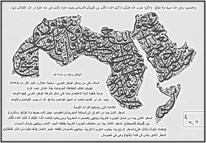 نذكر الجزائري محترف التحريف بهذه الخريطة المخططة بالآية الكريمة التي تضم اسم “المغرب” إلى جانب “المشرق”، وبما أن المغرب عدو واسمه لا تُبْلع وتتوقف وسط البلعوم وقد تصيب ناطقها بالاختناق حتى الموت، نسأله إن كانت له الجرأة لاستبدال “المغرب” ب”الجزائر” كما فعل مع البيت الشعري “ومن نَجدٍ إلى يمنِ *الى مِصرِ فتطوانِ” الذي استبدل فيه تطوان بوهران في الوقت الذي لم يكن للجزائر وجود بحكم أنها كانت مقاطعة فرنسية ولم تكن ضمن العالم العربي.